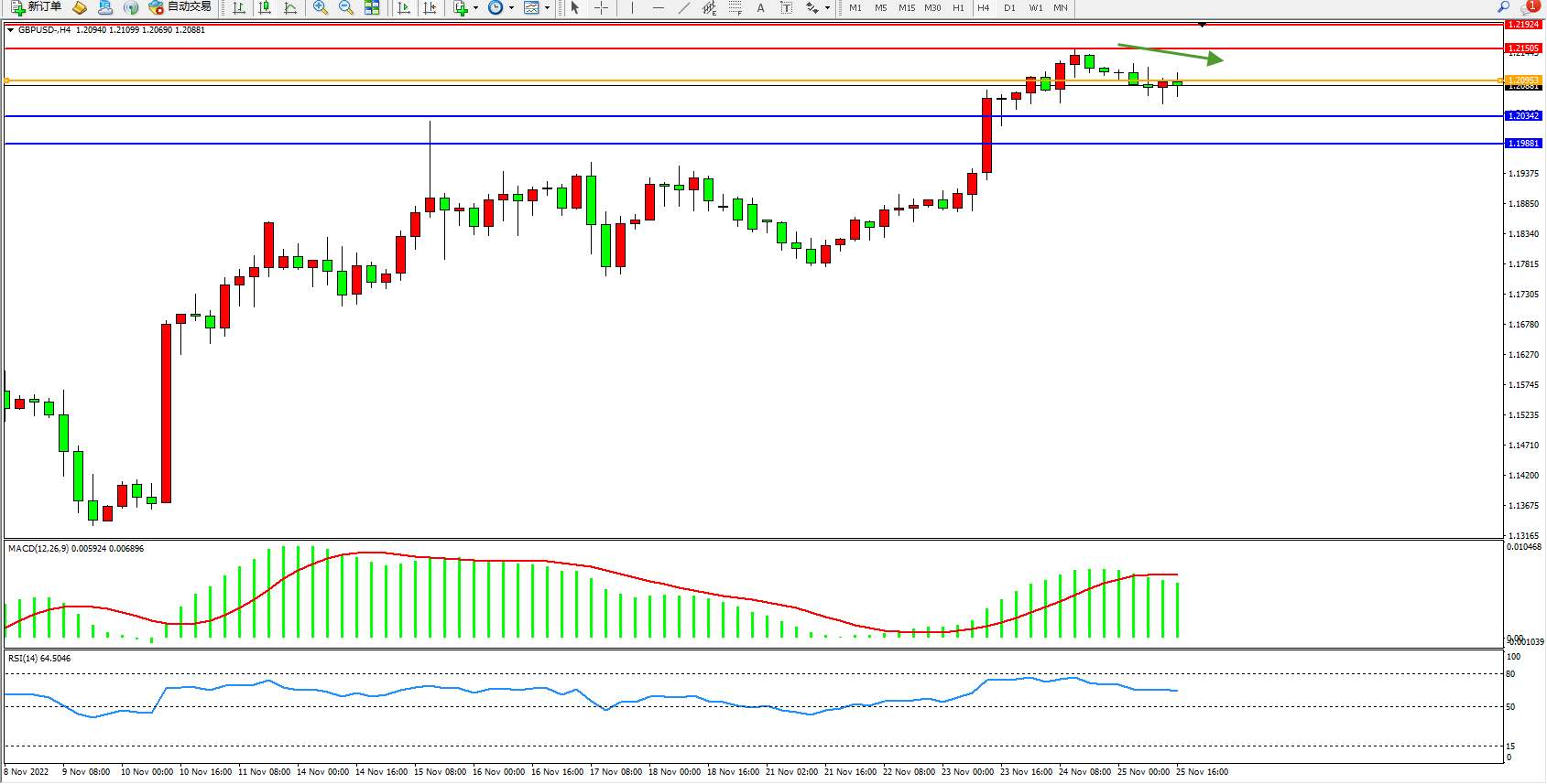 英镑美元GBPUSD ——4小时K线图显示: