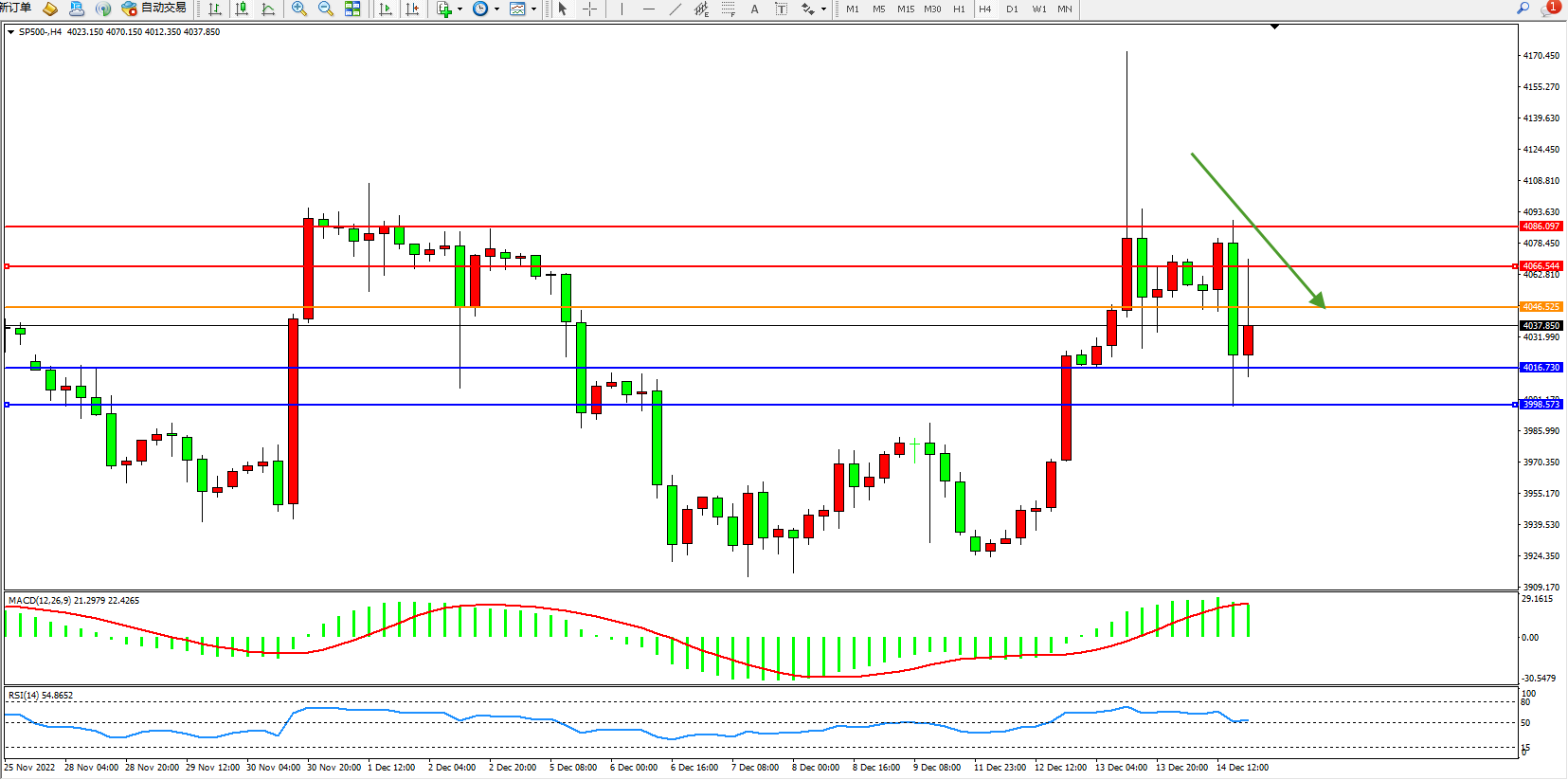 标普SP500——4小时K线图显示: