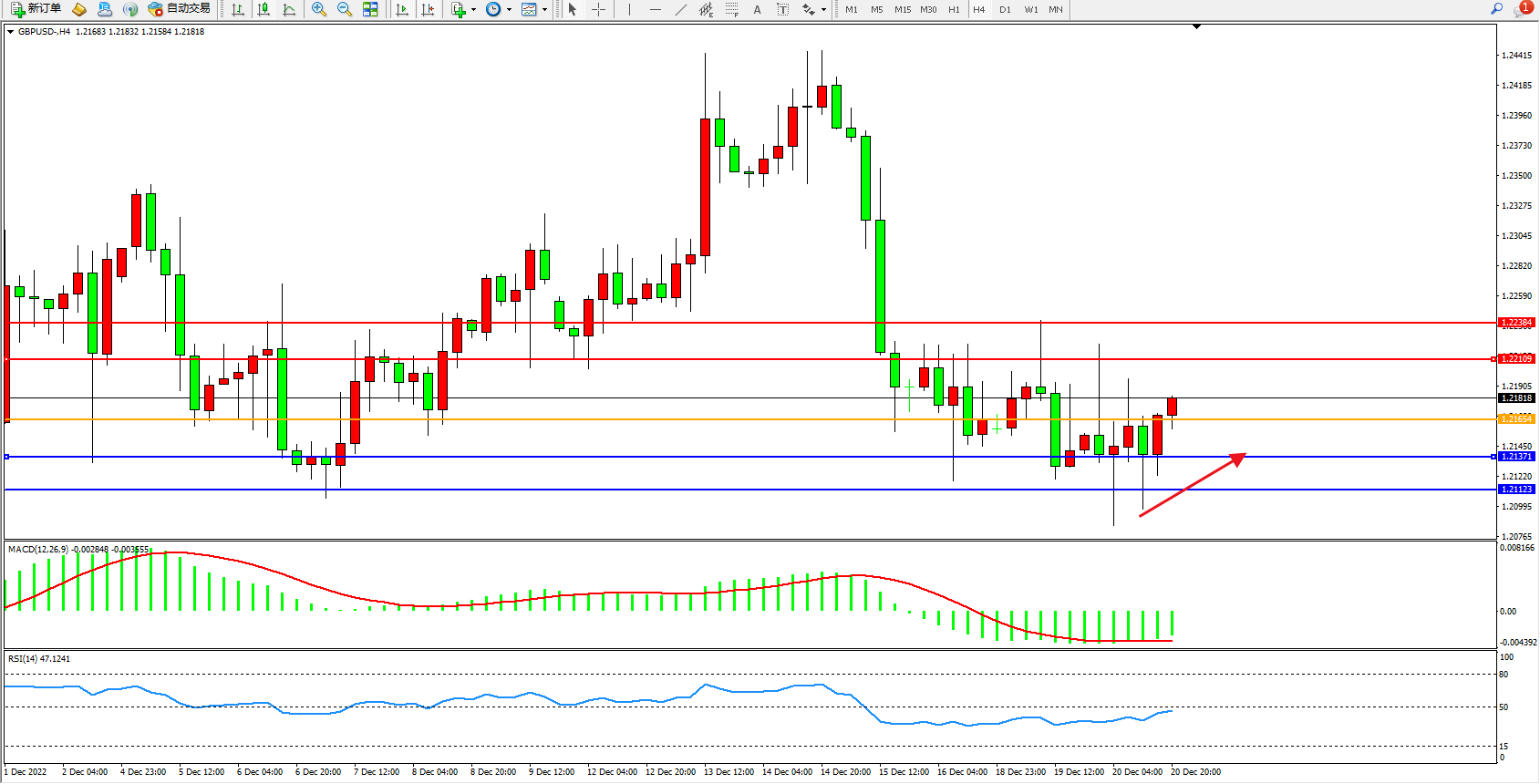 英镑美元GBPUSD ——4小时K线图显示: