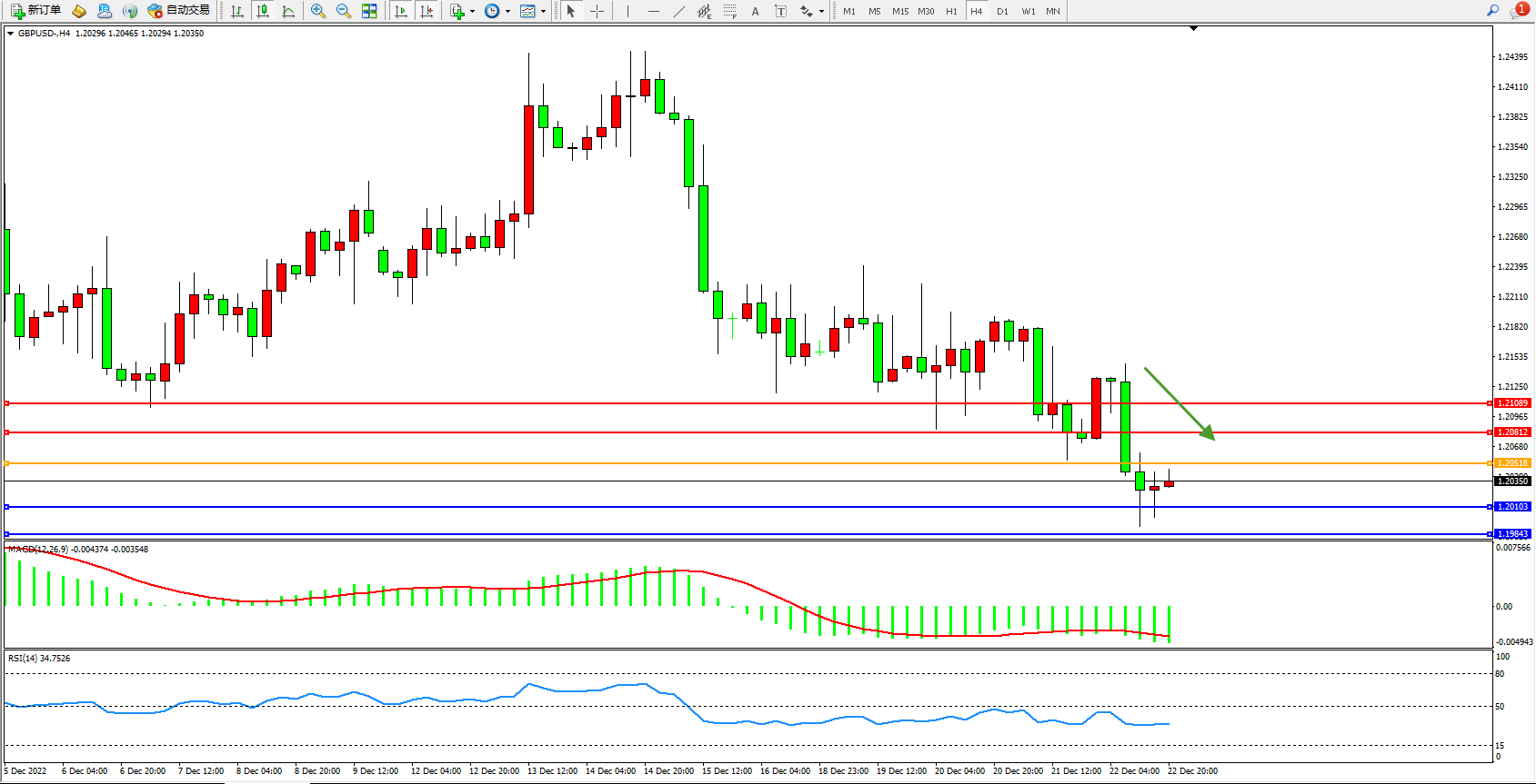 英镑美元GBPUSD ——4小时K线图显示: