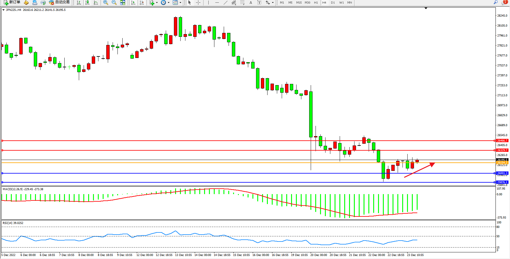 日经指数JPN225——4小时K线图显示:
