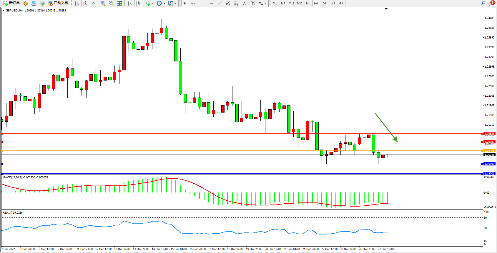 英镑美元GBPUSD ——4小时K线图显示:
