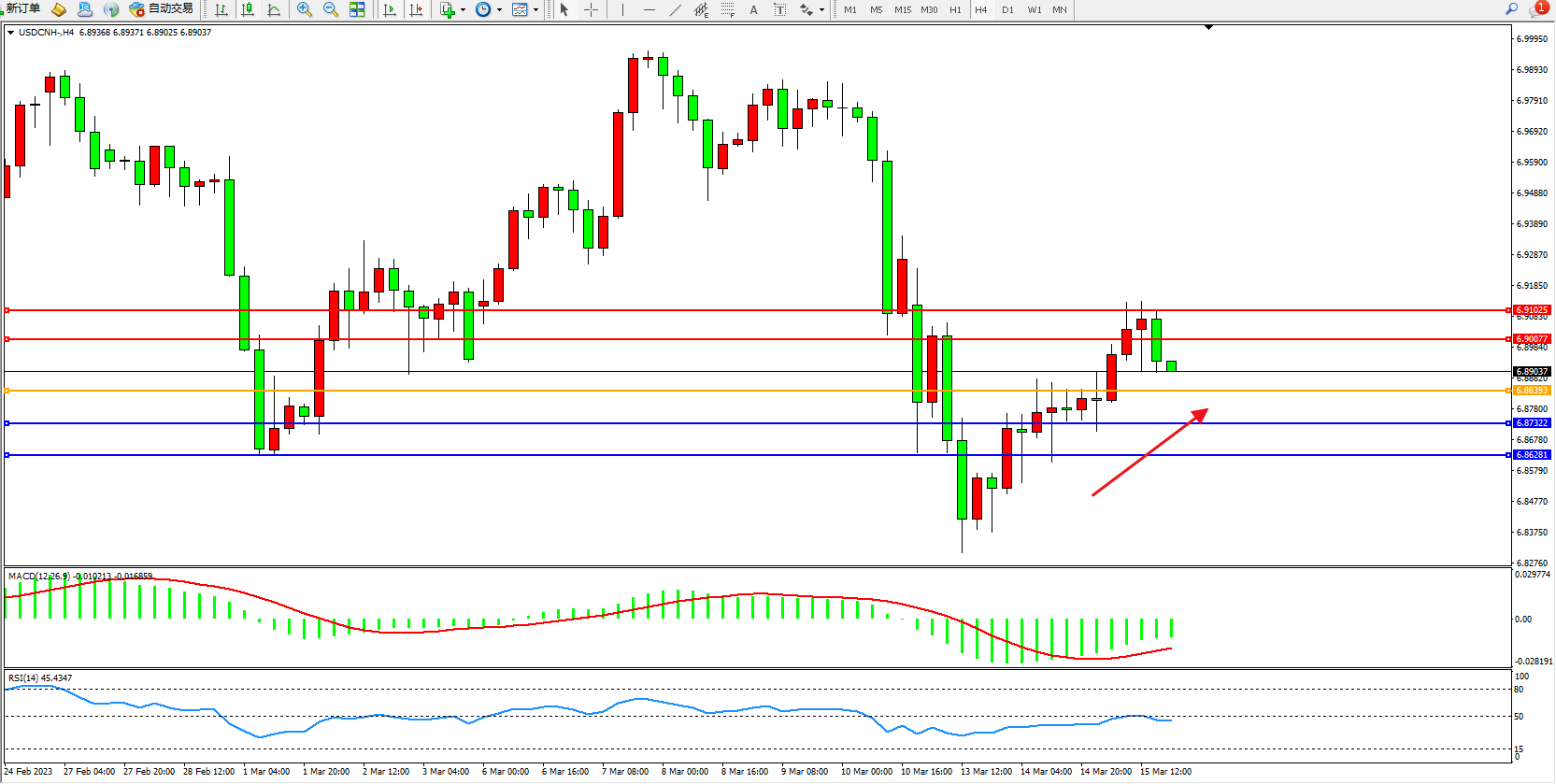 交易策略:6.88393上方看涨,目标6.90077  6.91025